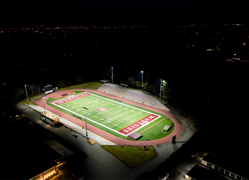 Our number one goal was to improve our overall lighting of the playing surface and surrounding areas. All of our fields of play have better coverage now. The ability to flash the lights in the stadium during contests and synchronize with music has been a hit with fans and students, which makes Friday nights more exciting.