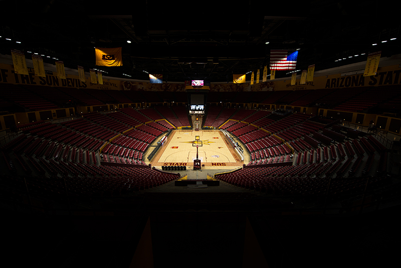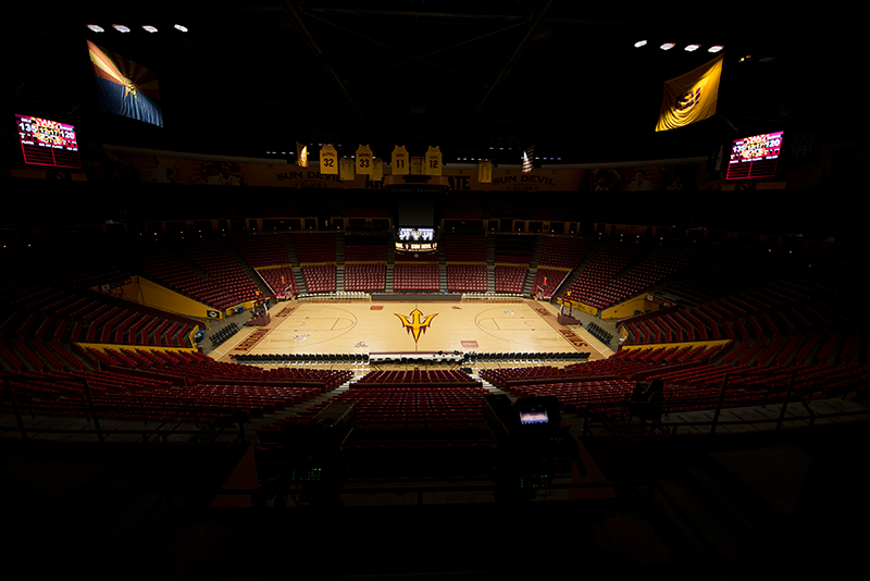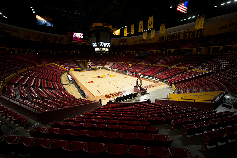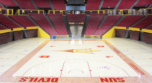 Arizona State University has announced the installation of a new Musco lighting solution using LED as the light source at Desert Financial Arena. This state-of-the-art system increases light levels and substantially reduces energy consumption by 75% when operated at full capacity for event lighting. Dimming controls provide additional energy savings and maintenance is virtually eliminated.