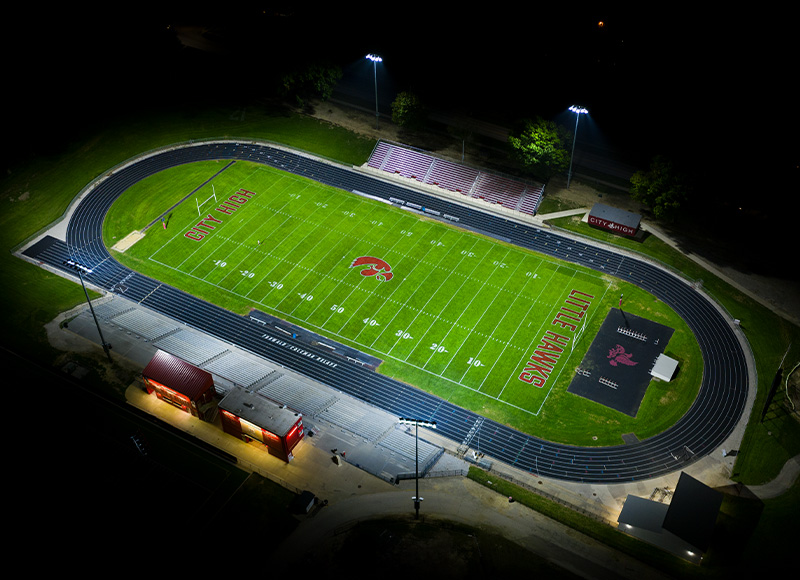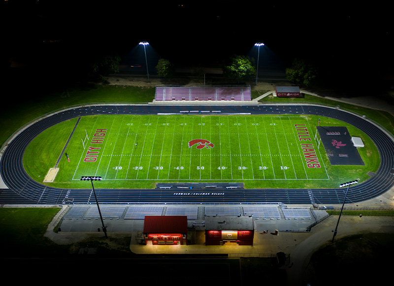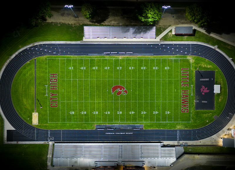 Iowa City High School had been struggling with its field lighting quality at Bates Field and after further testing it was discovered that the facility’s aging lighting system was producing insufficient light levels. This posed a safety issue for athletes when competing at night, encouraging school leaders to seek out a new lighting system in order to enhance safety at the facility. The school’s overall goal was to improve visibility on the field while creating a better game night atmosphere for players and fans. Additionally, Iowa City High School needed a lighting manufacturer that could effectively manage the project while the school juggled multiple construction initiatives.