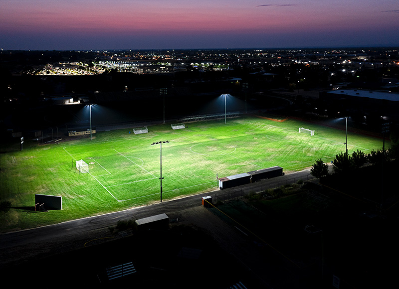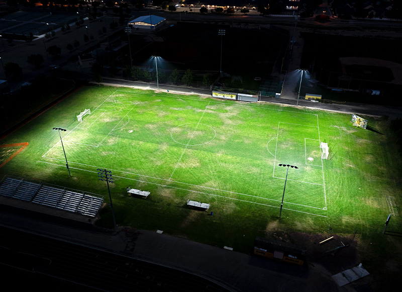 When Bishop Kelly High School received funding to perform long-awaited renovations at Nick Ysursa Field, project leaders wanted to use the opportunity to enhance game nights for its soccer and lacrosse programs. A portion of the project was dedicated to upgrading the field lighting system so athletes, fans, and visiting teams would enjoy a better overall experience with improved visibility. A new system would need to be approved by neighbors living atop the hill to the south of the stadium, so it was important that a lighting provider work closely with them to produce a solution that would satisfy their desire for advanced light control.