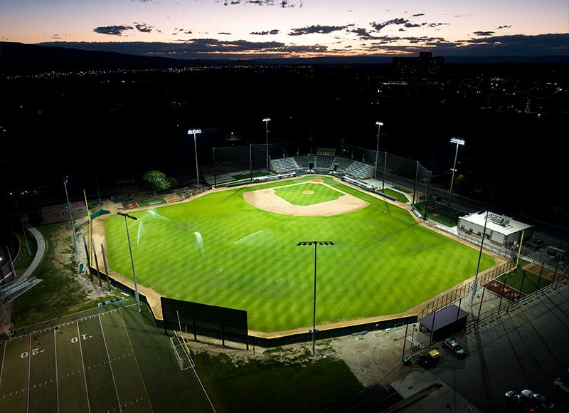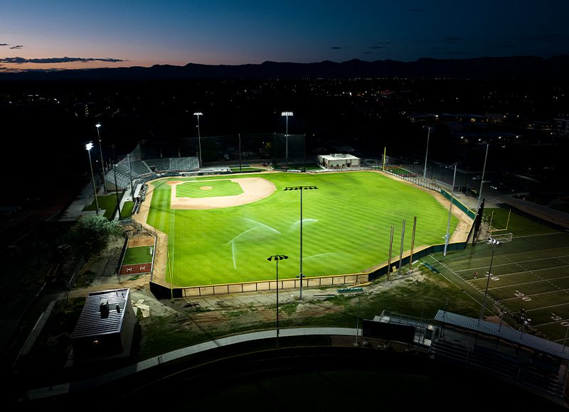 What once started as a practice facility with an infield and no outfield fencing transformed into a high caliber baseball stadium after Colorado Mesa University (CMU) completed a long-awaited overhaul of its on-campus baseball facility, which is part of the Bus Bergman Sports Complex. Through a partnership with the city of Grand Junction, the Mavericks previously played games at Suplizio Field—which is off-campus and shared by multiple local teams. The partnership was successful but in 2019 the NCAA created a post-season tournament that was the catalyst for change. For the new competition field, CMU wanted to create an exciting environment capable of hosting playoff games and needed advanced LED lighting that would satisfy broadcasting requirements and include cutting-edge special effects technology.