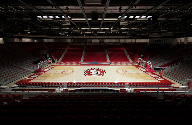 Sanford Coyote Sports Center at the University of South Dakota opened in 2016 with a LEED Silver rating, a certification that indicates the environmental efficiency of buildings. For the new basketball and volleyball arena’s lighting, it wasn’t a matter of whether LED was the right choice, it was a matter of which LED solution was right. The University ultimately partnered with Musco, due in large part to its special effects capabilities.