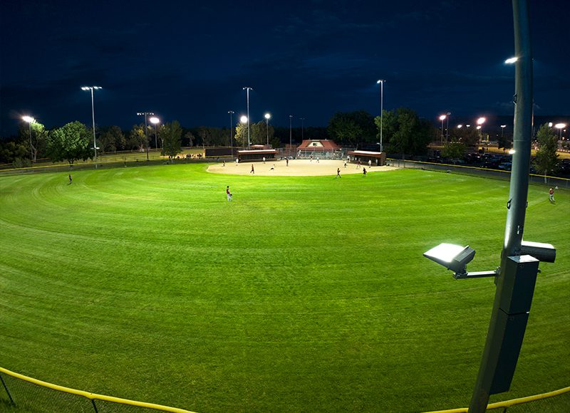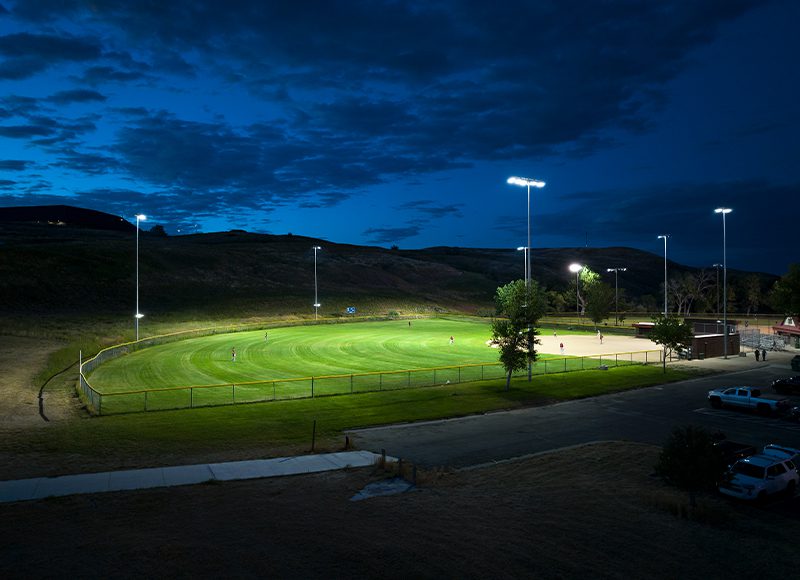 Wyoming is known for wide-open spaces and vast skies. When the City of Casper began thinking about upgrading to LED sports lighting, leaders were concerned that new lighting would create problems with light pollution in the night sky. After conducting lighting audits on the community’s athletic fields, they learned their aging metal halide lighting could no longer produce the light levels needed for safe play on the main baseball field at Crossroads Park. Project leaders decided to move forward with an upgrade on the field and began searching for an LED sports lighting system that would enhance safety and playability without increasing sky glow.