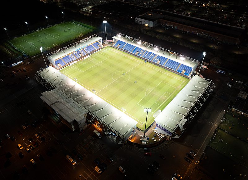 Shrewsbury Town’s home turf met most requirements for UEFA competition but fell short of UEFA lighting standards. The facility team at Croud Meadow had to find a temporary lighting solution that would bring the stadium up to UEFA-approved light levels during match play.