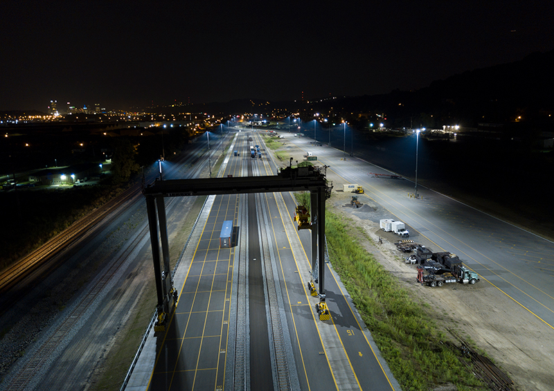 As part of a $60 million investment to redevelop the site of the former Pittsburgh & Lake Erie Rail Yard, CSX needed a lighting system for the Pittsburgh Intermodal Rail Terminal that would build on its commitment to safety and to maintaining the environment. Having worked with Musco on several other facilities, including Louisville Intermodal Terminal and Worcester Intermodal Terminal, CSX once again partnered with Musco. Leaders at CSX chose Musco’s Light‑Structure System™ with Total Light Control—TLC for LED™ technology for lighting the 70-acre facility.