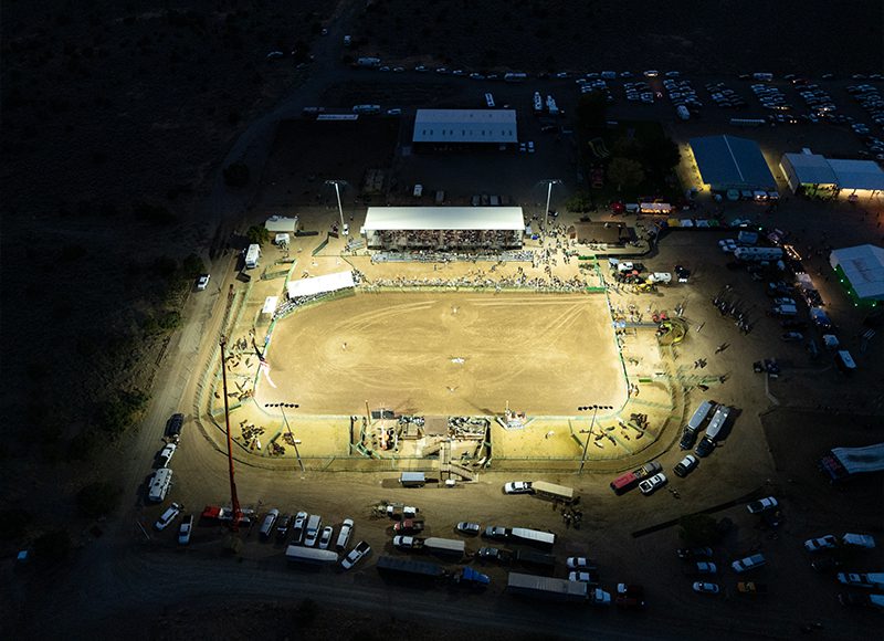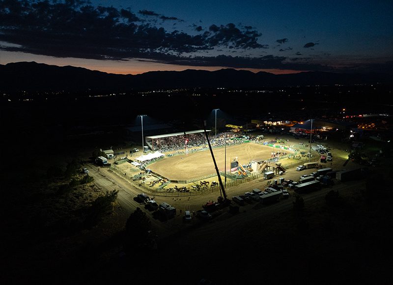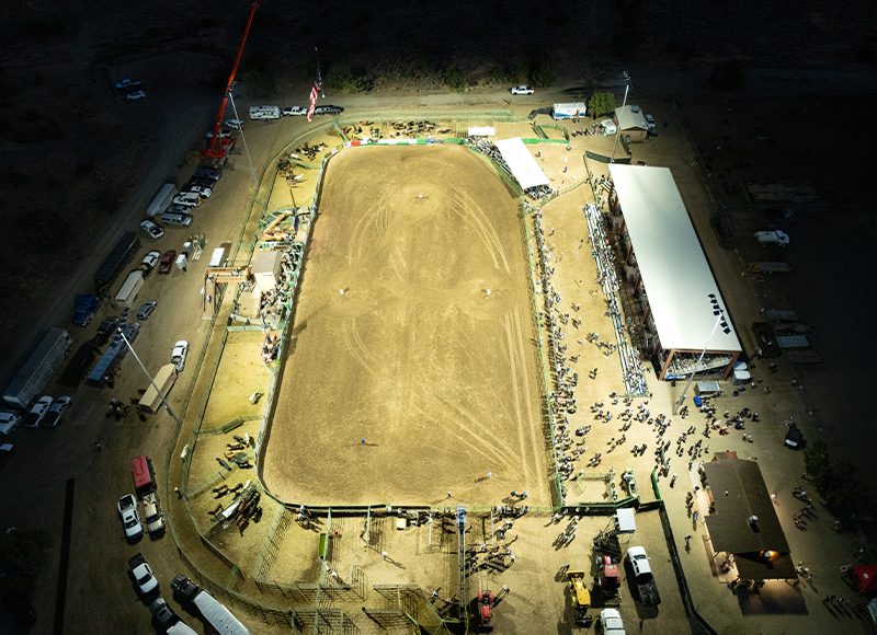 The rodeo arena at Douglas County Fairgrounds in Gardnerville, Nevada, attracts crowds long after dark. Riding and roping events, demolition derbies, monster truck shows, and other activities routinely run until 1 or 2 a.m., which means high-quality arena lighting is essential for safety, visibility, and visitor experience. Unfortunately, the original lighting setup poured light onto neighboring properties and created glare that distracted riders and spectators. Douglas County wanted an energy-efficient, easy-to-use lighting system that would more closely replicate daytime conditions, resolve glare concerns, and protect neighbors from spill light.