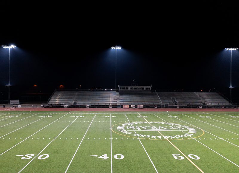St. Vrain Valley School District (SVVSD) in Longmont, Colorado, determined the near twenty-year-old lighting system at Everly-Montgomery Field was due for an upgrade. The stadium hosts several sports for four of the district’s high schools, and with the facility frequently used at night, SVVSD needed to ensure it complied with new Boulder County lighting regulations—which require systems to include light control capabilities to prevent the stadium’s lights from reaching nearby roads or residences. Additionally, to qualify for an energy efficiency rebate on its lighting project through the local Efficiency Works program, the district needed an LED sports lighting solution that would significantly reduce energy consumption.