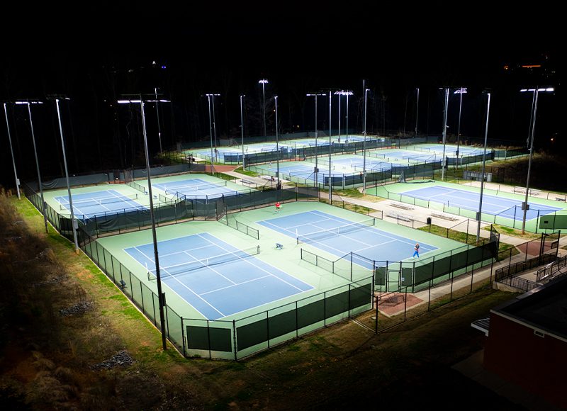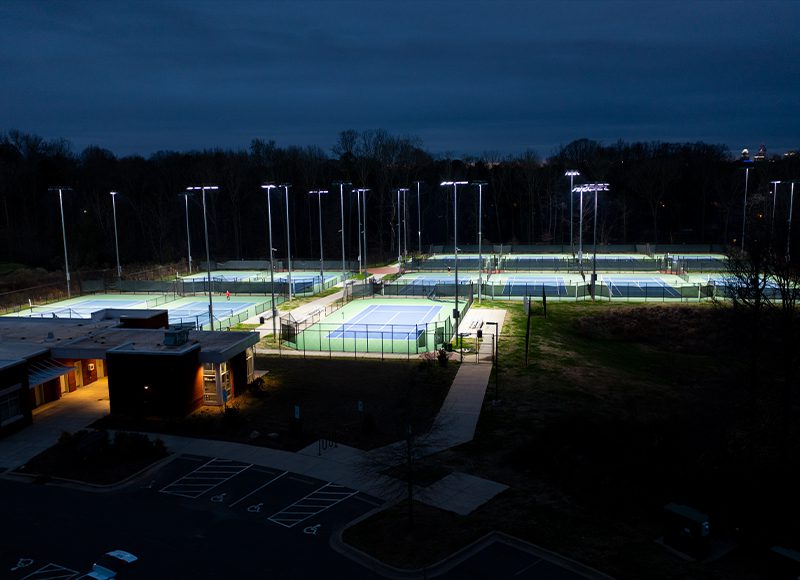 Mecklenburg County partnered with Queens University of Charlotte to build a state-of-the-art facility that would create a fun and safe environment for the community to play tennis. The Howard Lavine Tennis Center includes 13 competition-level courts that would each need lighting to allow community members and student-athletes to use the facility in the evening. With a lighting ordinance of zero footcandles at the facility’s property line and concern from neighbors over the potential impact of light from the facility, the city needed a proven system with superior light control capabilities. Additionally, with over 40 facilities to manage, the city wanted a system that could be easily operated and maintained.