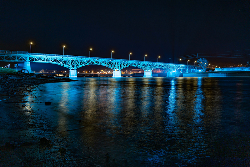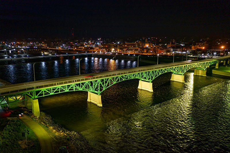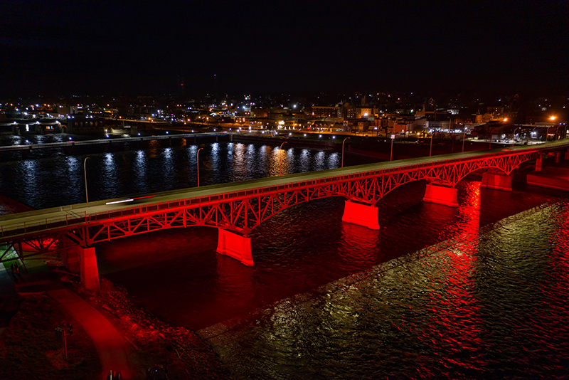 In 2000, the City of Ottumwa had a new lighting system installed for accent illumination at the Jefferson Street Viaduct. When the community earned a grant from Alliant Energy for meeting energy efficiency goals city-wide, leaders decided to upgrade the bridge lighting to a more advanced and efficient LED system. Having worked together successfully on the original HID system at the bridge, project leaders in Ottumwa again chose to partner with Musco and have its Total Light Control—TLC for LED™ system and Show-Light® entertainment package installed.