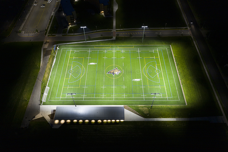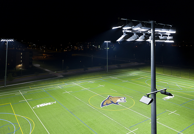 - The residence halls, observatory, and other campus buildings surrounding the fields aren’t affected by spill light or glare as a result of the system’s precise light control and patented visoring around the fixtures.