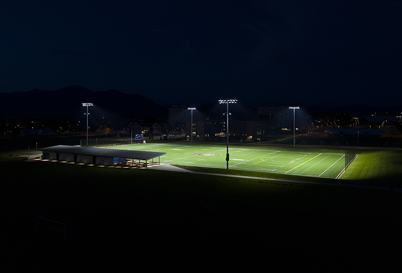 Dobbie Lambert Intramural Field sits directly in the middle of Montana State University’s campus, and school leaders decided to have new lighting installed to extend the hours of operation for student activities. In addition to providing the best possible visibility for students, project leaders needed lighting that would prevent glare or spill light from impacting the buildings surrounding the fields, including an observatory for which dark skies are critical. Having worked together on previous projects, the university again put its trust in Musco.
