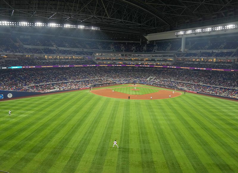 Opened in 2012, loanDepot park is home to the Miami Marlins Major League Baseball (MLB) club. Although the Marlins were satisfied with the performance of their metal halide sports lighting, they were excited by the possibility of enhancing their fan experience with the theatrical effects offered by new LED technology. The Marlins needed an LED sports lighting manufacturer that could not only provide color-changing fixtures and DMX controls, but also complete installation of the new lights on a tight timeline to ensure loanDepot park was ready for the 2022 MLB season.