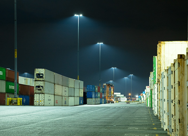 Spanning 450 acres in the Port of New York and New Jersey, Maher Terminals LLC is the largest marine container terminal in North America. Maher Terminals is an industry champion in environmental responsibility and sustainability and has adopted an aggressive Net Zero Emissions program, which achieves Net Zero Emissions by 2040—a full decade before the requirement of the Paris Climate Agreement. When the facility’s existing high-pressure sodium lights had become outdated, costly to maintain, and unable to produce necessary light levels, officials at Maher determined it was time for an upgrade. The company began searching for a new lighting solution that would not only improve light levels and eliminate maintenance costs, but also reduce energy consumption sufficiently to meet the requirements of New Jersey’s Clean Energy Program™ for large energy users.
