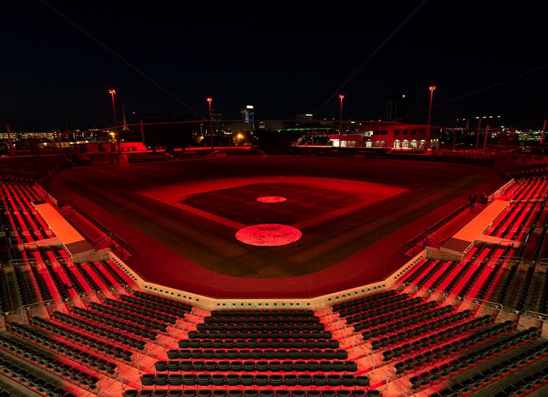 After years without an affiliate MLB club, the City of Wichita was eager to bring Minor League Baseball (MiLB) back to Kansas. To do this, the city needed to build a new stadium to AAA standards in time for the start of the 2020 MiLB season just 18 months away. Riverfront Stadium would need lighting that not only meets MiLB AAA standards but also allows the stadium to host events like football games and concerts. The system would need to offer advanced glare control, remote drivers for easy servicing, and color-changing capabilities, as well as a long-term warranty that ensures MiLB standards are met for years to come.