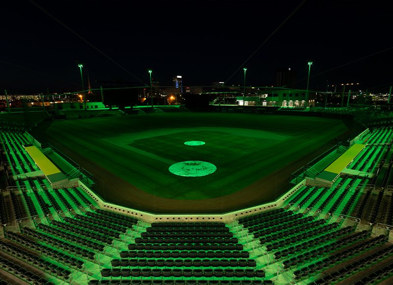 Baseball field at Wichita Riverfront Stadium after sports lighting upgrade