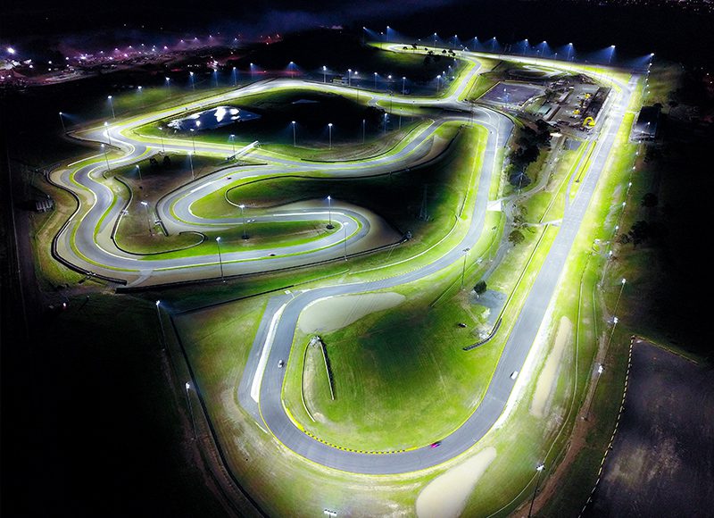 From F1-style open-wheeler racers, to motorcycles, to exotic supercars like Lamborghinis and Ferraris, Sydney Motorsport Park is equipped to accommodate some of the world’s fastest and most-photographed vehicles. SMSP is Sydney’s only permanent racetrack, and one of just two permanent race circuits in Australia that holds a FIA Grade 2 International License, and Motorcycle Australia National Track License. When circuit operators decided to celebrate the track’s 30th anniversary by adding night races to the schedule, they needed a lighting system designed for the facility’s signature blend of safety, style, and speed—allowing drivers on each of the track’s four circuit configurations to see clearly at speeds of 150 mph and look great in the process.