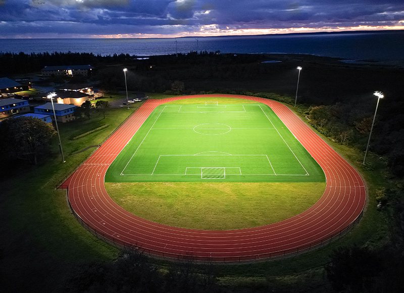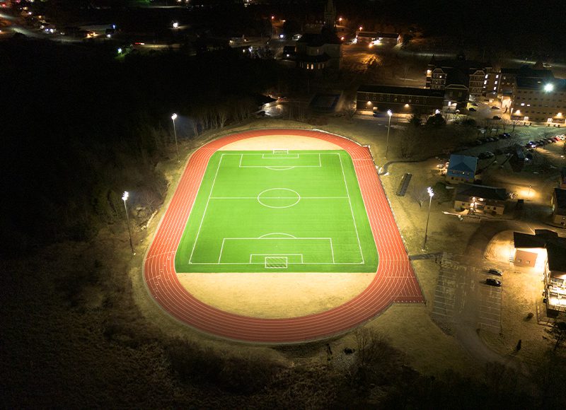 Université Sainte-Anne is a hub for education, economic activity, and recreation in the community of Pointe-de-l’Église, Nova Scotia, Canada. Skirted by nature trails and nestled between St. Mary’s Bay and an Acadian scenic roadway, the university also strives to be a model for sustainable practices that conserve energy, protect wildlife, and preserve the overall quality of life. When Sainte-Anne decided to light a new running track and soccer field, the university had high standards for a lighting solution that would meet the needs of athletes while protecting neighbors and the night sky.