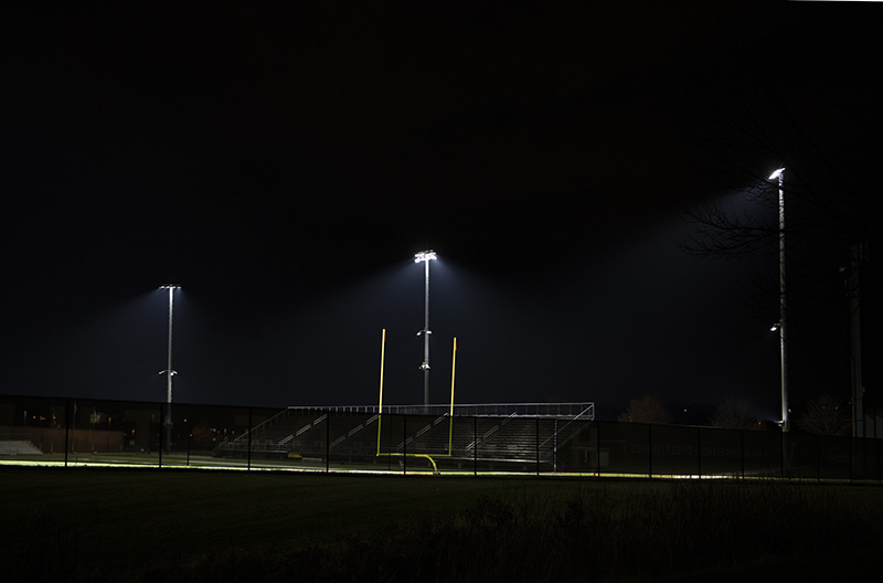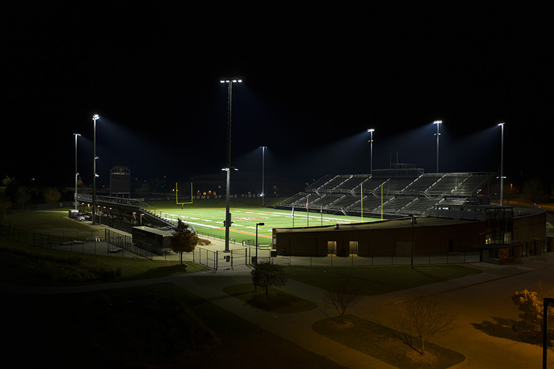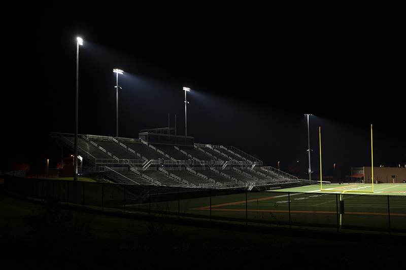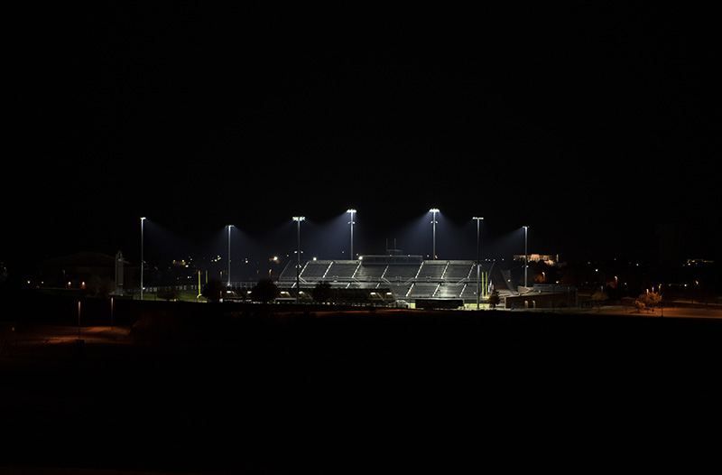 - Fans attending games in the 15,000-seat stadium won’t be blinded due to, again, the system’s patented glare control technology, which set it apart from other LED lighting the school considered.