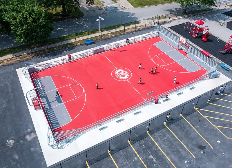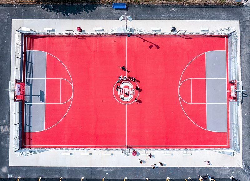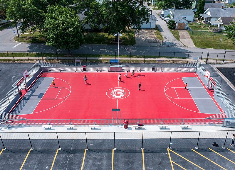 Serving nearly 4,900 students, Ottumwa Community School District has a pair of complementary goals: to help make Ottumwa, Iowa, a destination for families; and to be the best district in the state. The district’s “Be the Best” Initiative includes a variety of projects designed to increase student achievement, enhance school safety and culture, and promote community collaboration and school pride. At one of the district’s six public elementary schools, Wilson Elementary, leaders saw an opportunity to enrich the community by transforming an underutilized patch of asphalt into an inviting and well-lit sports environment for students, staff, and neighbors. They planned for an outdoor space suited for a variety of free sports activities, from pickup games to youth clinics and community programming.